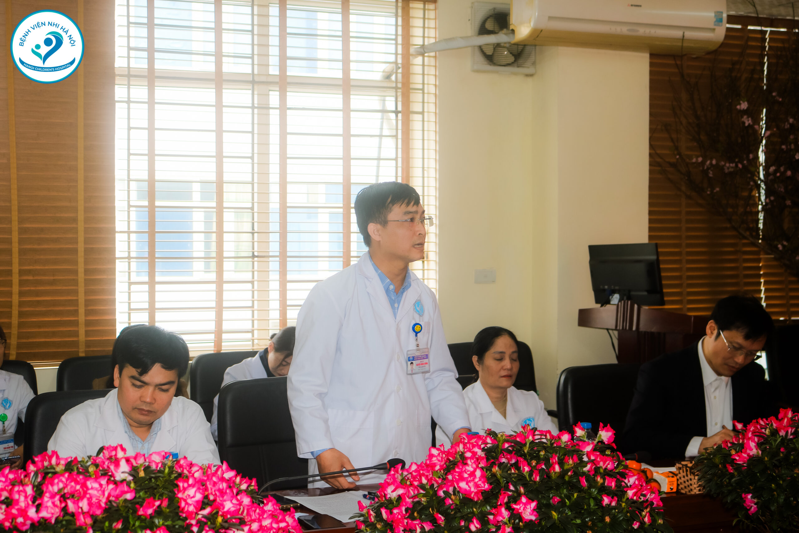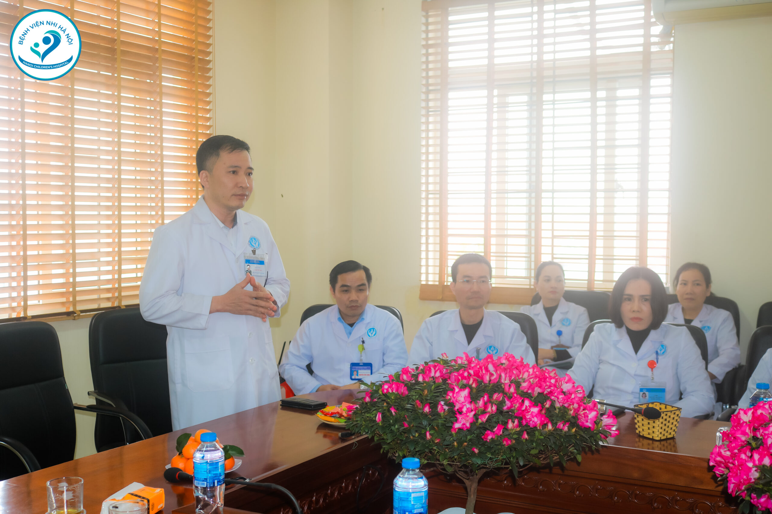 Tại buổi làm việc, TS.BS. Ngô Quang Hùng – Giám đốc Bệnh viện Nhi Hà Nội đã phát biểu, giới thiệu đoàn công tác và nêu rõ mục đích buổi làm việc, nhấn mạnh vai trò của sự phối hợp chuyên môn giữa các cơ sở y tế trong việc nâng cao chất lượng chăm sóc sức khỏe trẻ em.