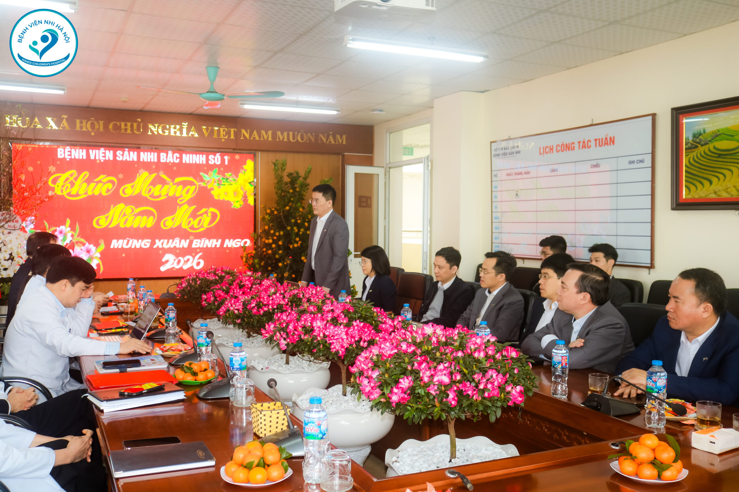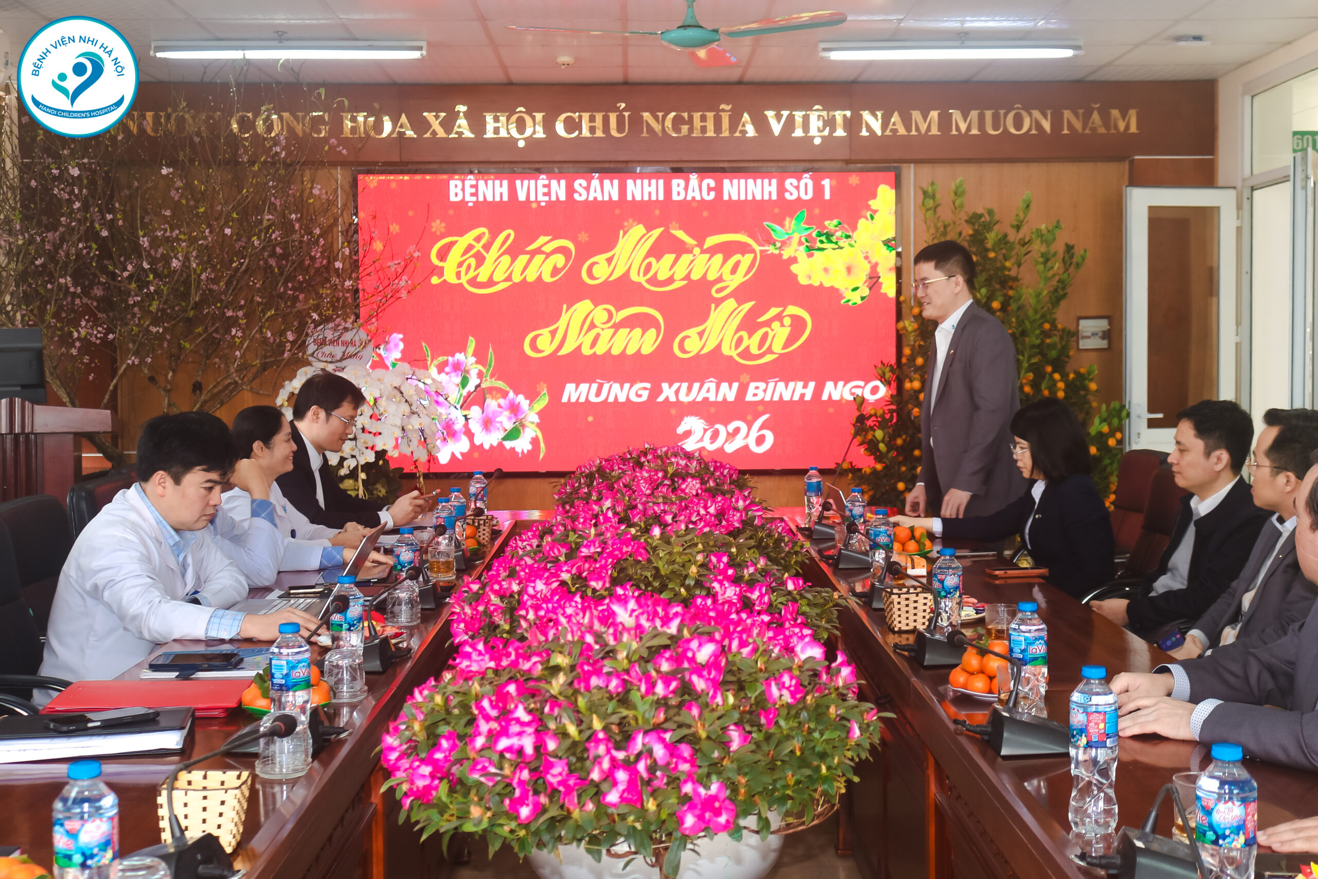 Ngày 10/02/2026, đoàn công tác Bệnh viện Nhi Hà Nội đến làm việc Bệnh viện Sản Nhi Bắc Ninh Số 1 nhằm trao đổi kinh nghiệm chuyên môn, tăng cường phối hợp trong khám chữa bệnh nhi và định hướng hợp tác lâu dài giữa hai đơn vị. Đồng thời gửi lời chúc mừng tới BS.CKII. Hoàng Trường Giang nhân dịp nhận Quyết định bổ nhiệm Giám đốc Bệnh viện Sản Nhi Bắc Ninh Số 1