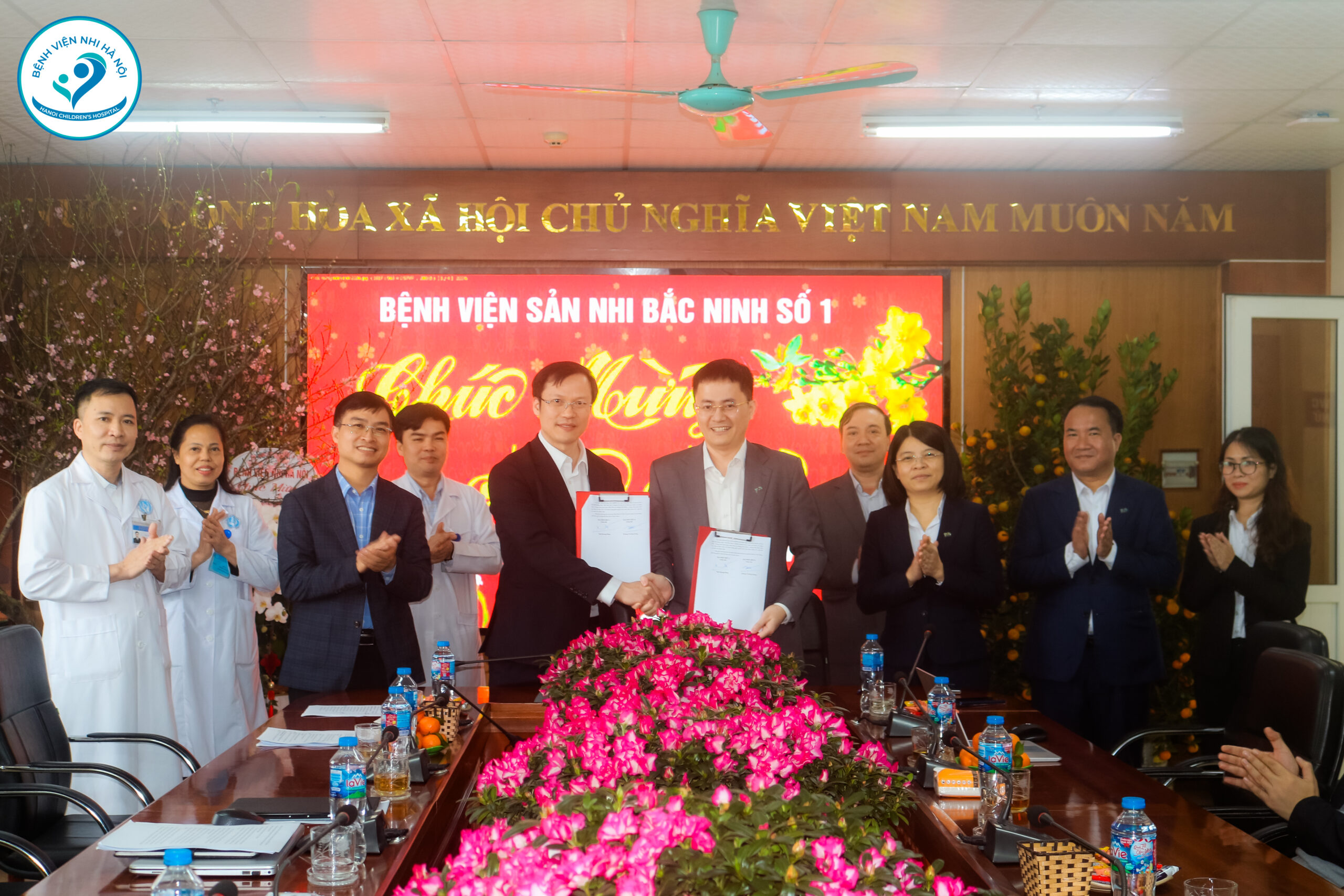 Đón tiếp đoàn có đại diện Ban lãnh đạo cùng cán bộ chủ chốt của Bệnh viện Sản Nhi Bắc Ninh Số 1.