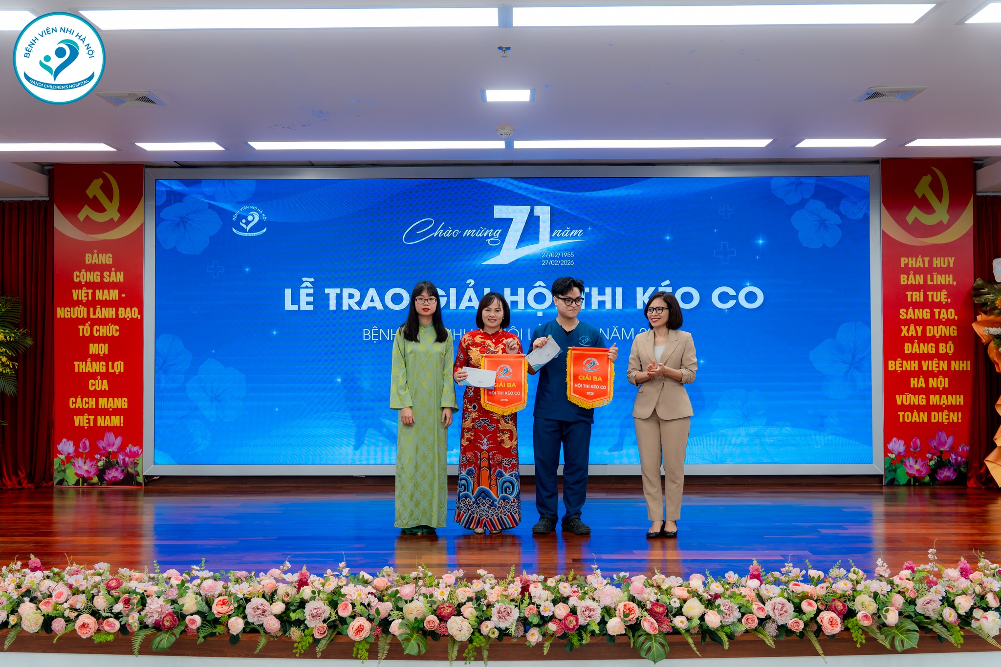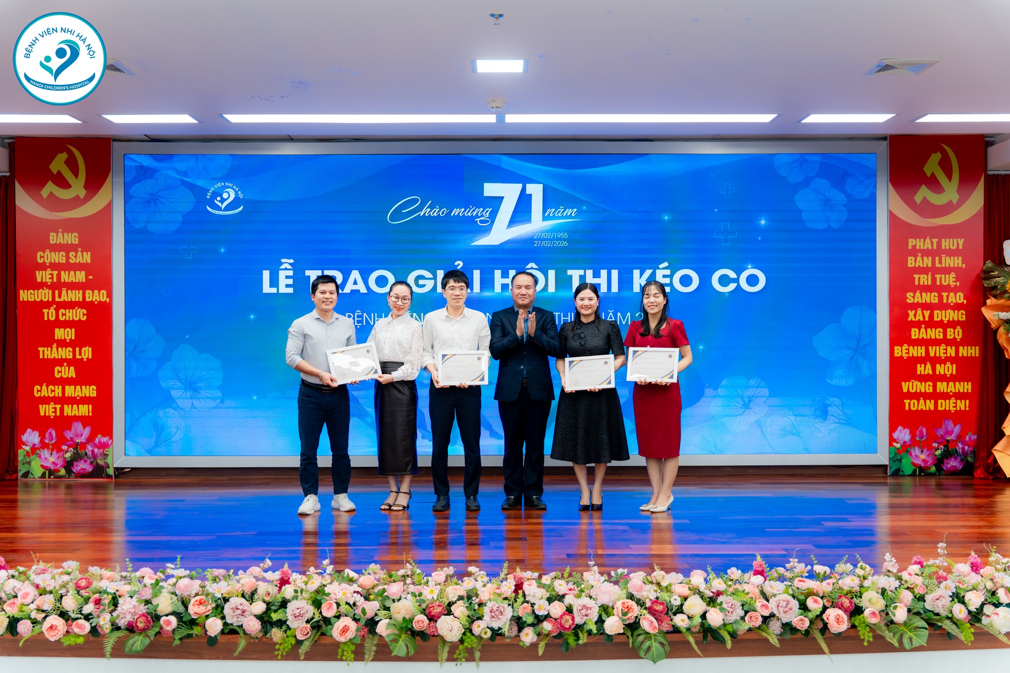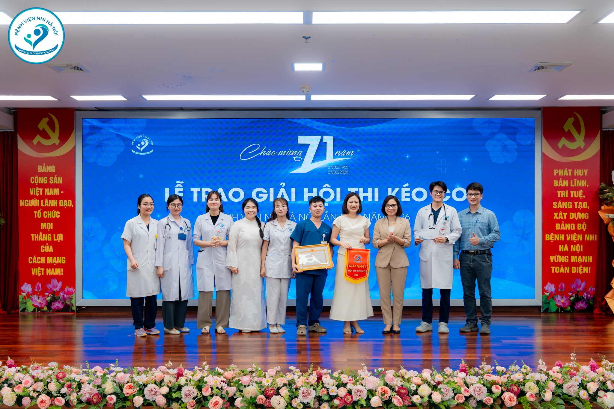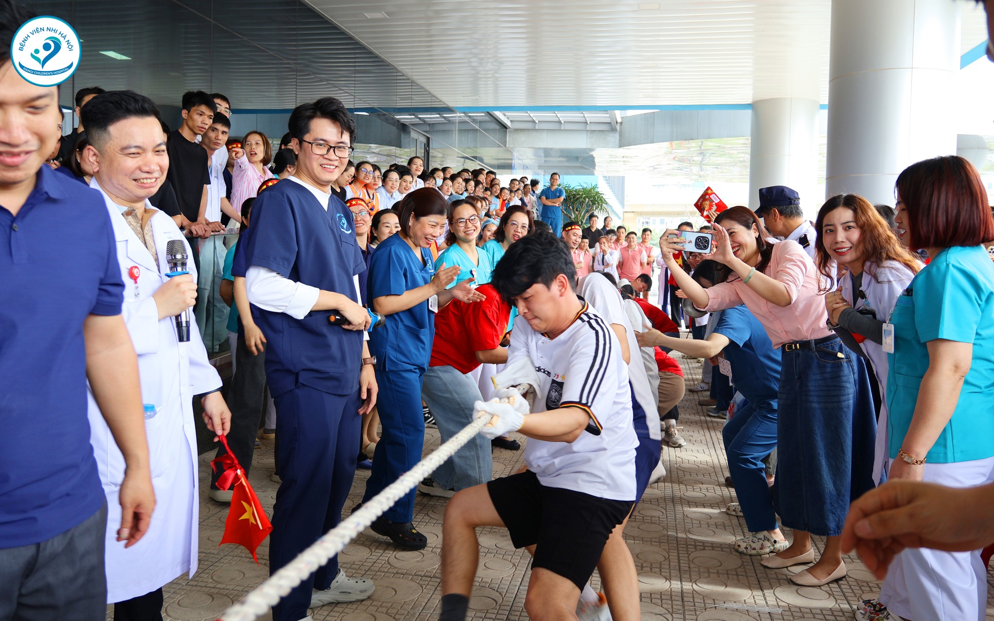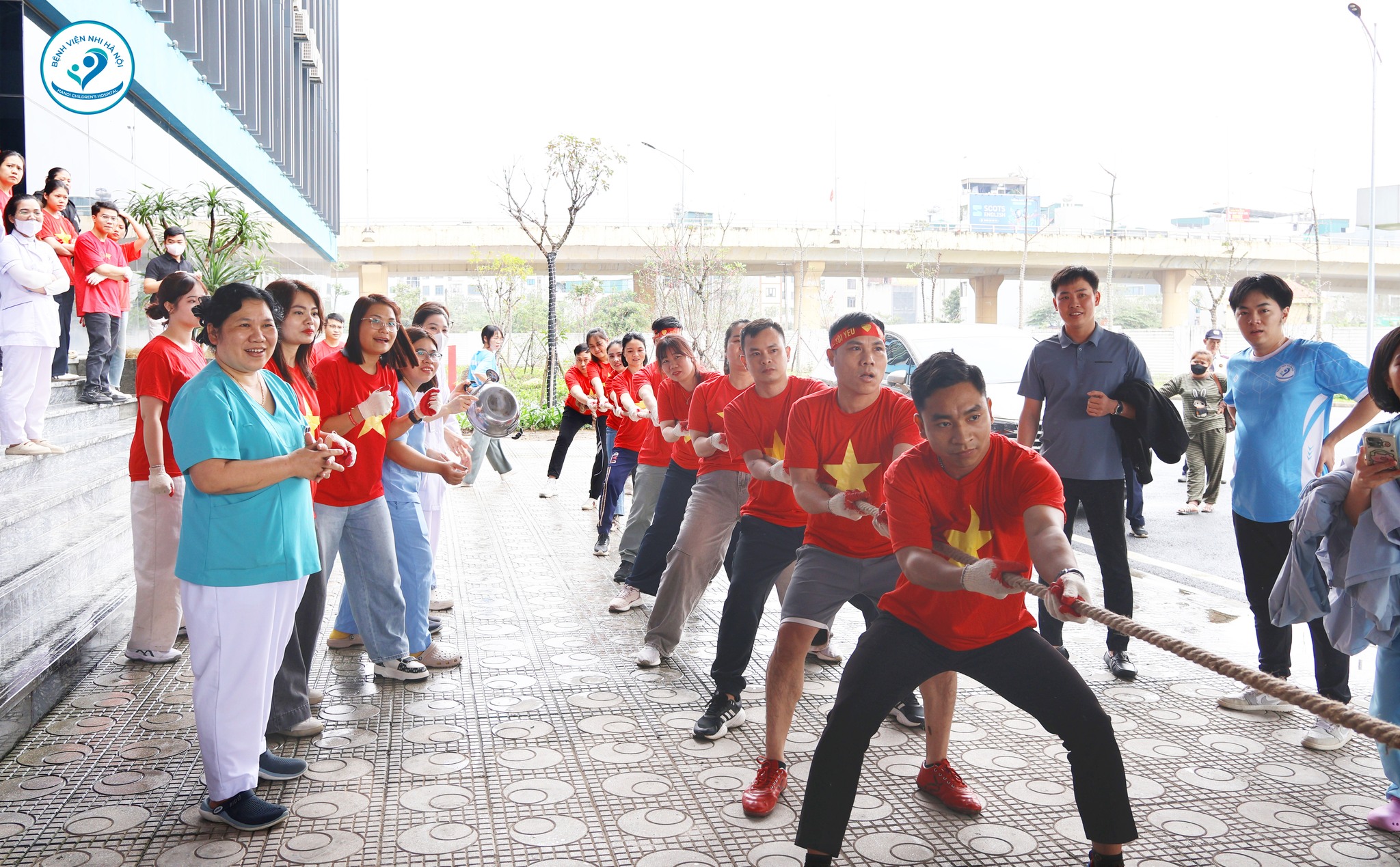 Hướng tới ngày lễ trọng đại, Hội thao môn kéo co chào mừng 27/02 đã diễn ra sôi nổi với sự tham gia của các khoa, phòng trong toàn Bệnh viện. Những tiếng hò reo, những cái nắm tay siết chặt không chỉ thể hiện tinh thần thể thao mà còn lan tỏa sự đoàn kết, gắn bó – sức mạnh tập thể làm nên thương hiệu Bệnh viện Nhi Hà Nội hôm nay.