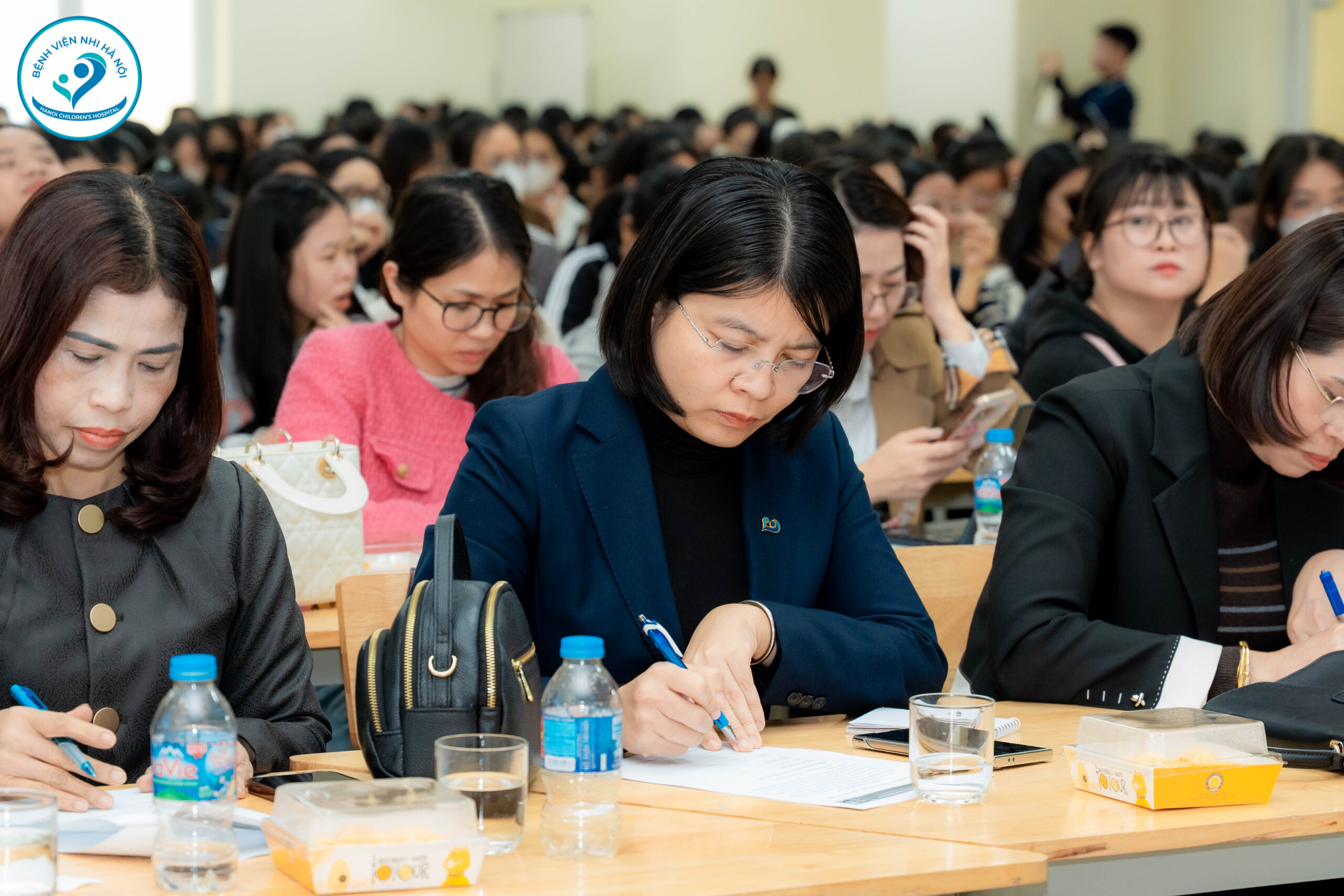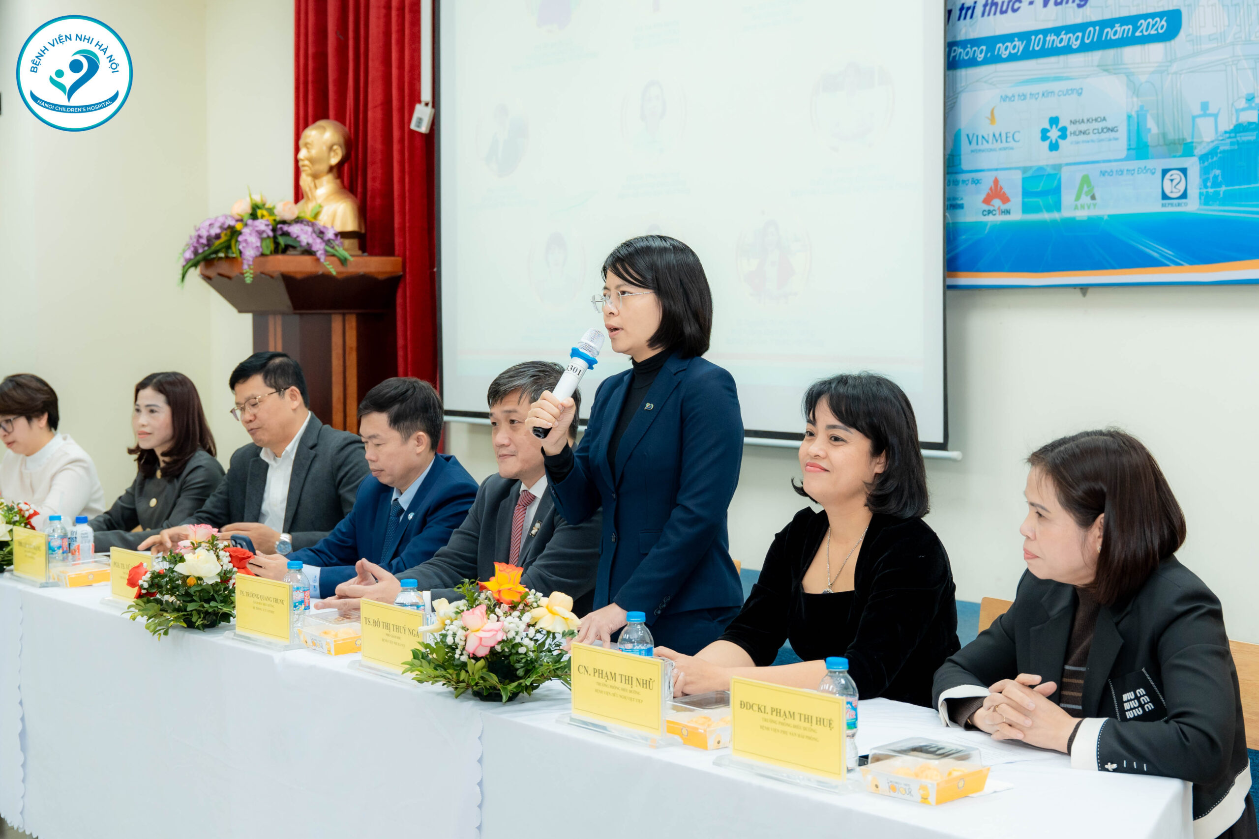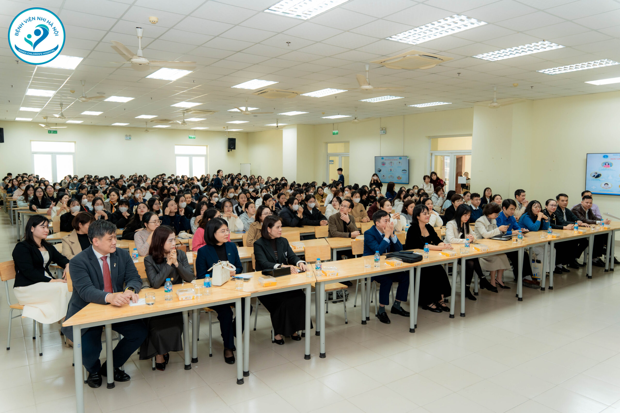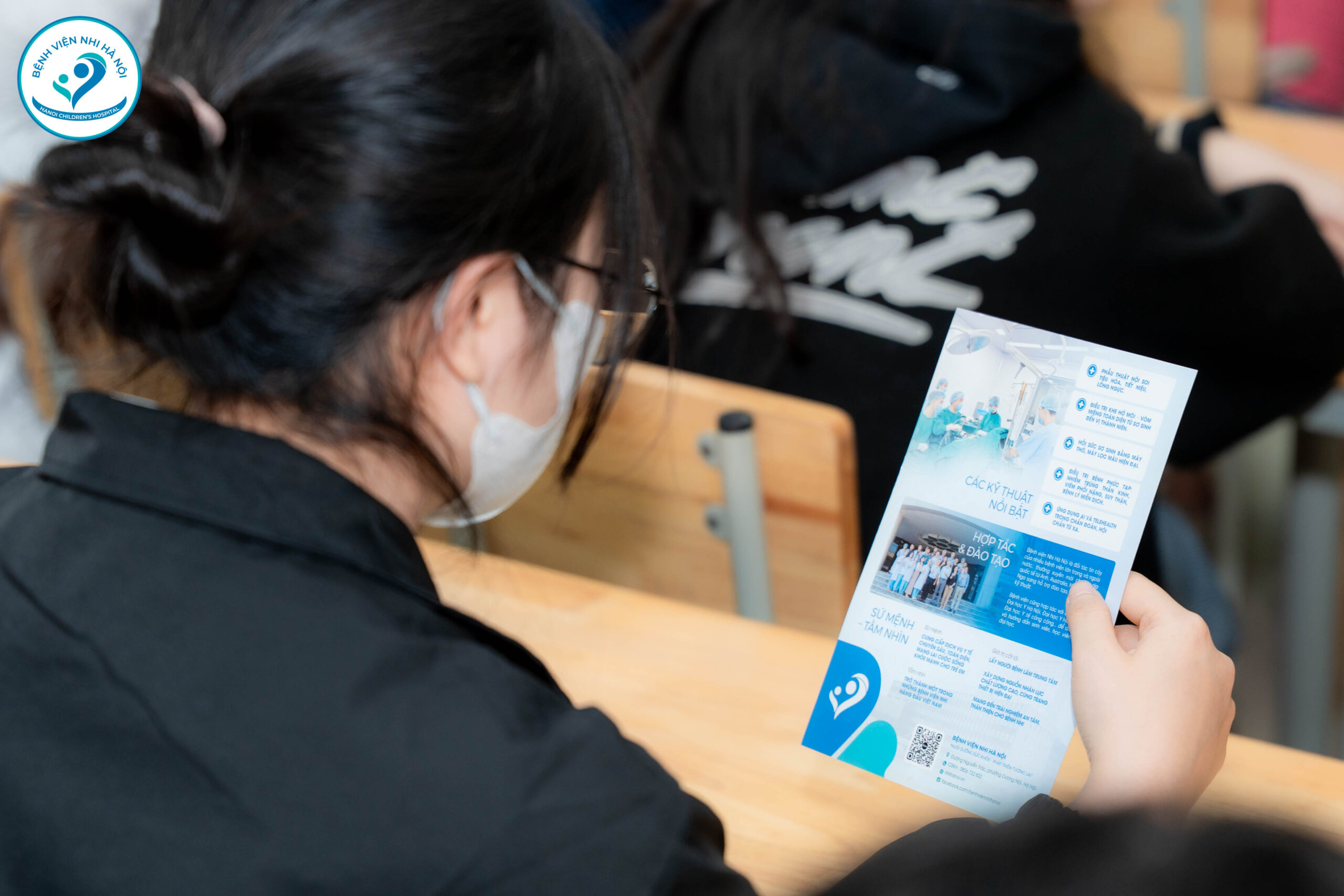 Tại chương trình, đoàn công tác của Bệnh viện Nhi Hà Nội gồm Ban lãnh đạo do TS.BS. Đỗ Thị Thúy Nga – Phó Giám đốc Bệnh viện làm Trưởng đoàn và lãnh đạo các khoa, phòng chuyên môn đã giới thiệu tổng quan về bệnh viện, các lĩnh vực thế mạnh, môi trường làm việc cũng như cơ hội học tập, phát triển nghề nghiệp dành cho sinh viên sau khi ra trường. Không khí buổi tọa đàm diễn ra cởi mở, gần gũi với nhiều câu hỏi, trao đổi thẳng thắn xoay quanh thực tế công việc, kỹ năng cần thiết và hành trình phát triển của người làm công tác nhi khoa.