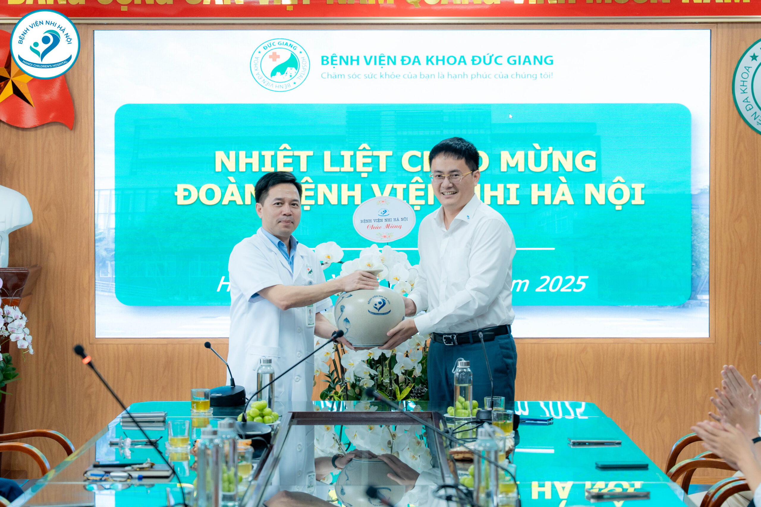 Sáng ngày 17/10/2025, Đoàn công tác của Bệnh viện Nhi Hà Nội do TS.BS Ngô Quang Hùng – Giám đốc Bệnh viện dẫn đầu đã đến làm việc và trao đổi hợp tác chuyên môn tại Bệnh viện Đa khoa Đức Giang.