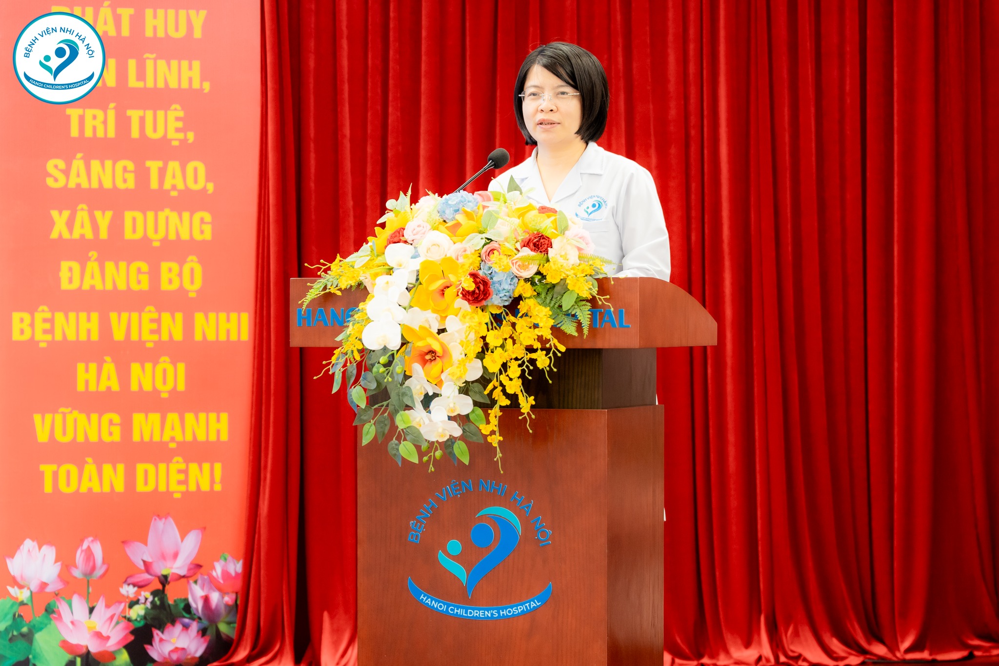 Phát biểu tri ân các thầy cô, TS.BS Đỗ Thị Thúy Nga – Phó Giám đốc Bệnh viện Nhi Hà Nội gửi lời cảm ơn sâu sắc đến đội ngũ giảng viên đã luôn tận tâm đồng hành cùng bệnh viện trong công tác giảng dạy, đào tạo, hướng dẫn lâm sàng và nghiên cứu khoa học. TS.BS Đỗ Thị Thúy Nga nhấn mạnh: chính sự tận tụy, tâm huyết và trách nhiệm của các thầy cô đã góp phần quan trọng trong việc xây dựng môi trường đào tạo chất lượng cao, nuôi dưỡng và truyền cảm hứng nghề nghiệp cho các thế hệ bác sĩ trẻ – những người sẽ tiếp tục sứ mệnh chăm sóc sức khỏe trẻ em trong tương lai.